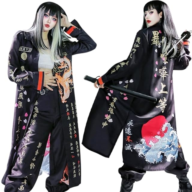 [Hotiego] ハロウィン 特攻服 コスプレ ヤンキー 黑 喧嘩上等 ツッパリ 不良 暴走族 暴走天使 聖夜制覇 走死走命 天上天下唯我独尊 愛羅武勇 男女兼用 舞台装 演出服 変装 仮装 イベント 忘年会 cosplay 撮影 祭り 黒 M