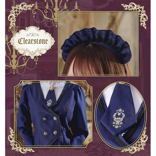 セット内容:カチューシャ、シャツ付きジャケット、ブローチタイ、スカート