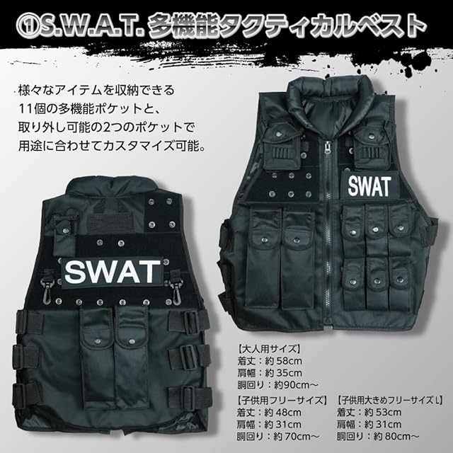 [Lili Nono] SWAT タクティカルベスト 単品 サバゲー ハロウィン イベント 特殊部隊 コスプレ 衣装 仮装 (キッズフリーサイズS)
