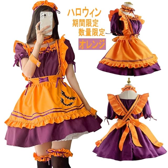 [FULINE] ハロウィーン ハロウィン メイド服 コスプレ セクシー ロリータ 衣装 リボン プリンセス ドレス ゴスロリ ワンピース 大きいサイズ オレンジ S