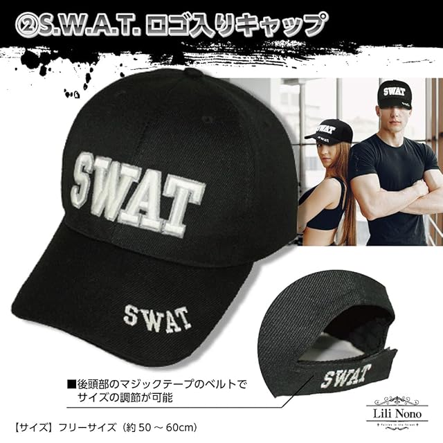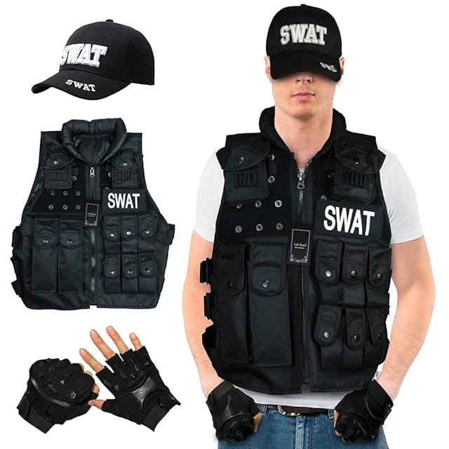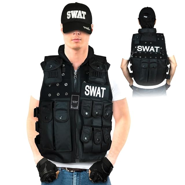 [Lili Nono] SWAT タクティカルベスト キャップ グローブ 3点セット サバゲー ハロウィン イベント 特殊部隊 コスプレ 衣装 仮装 (大人フリーサイズ)
