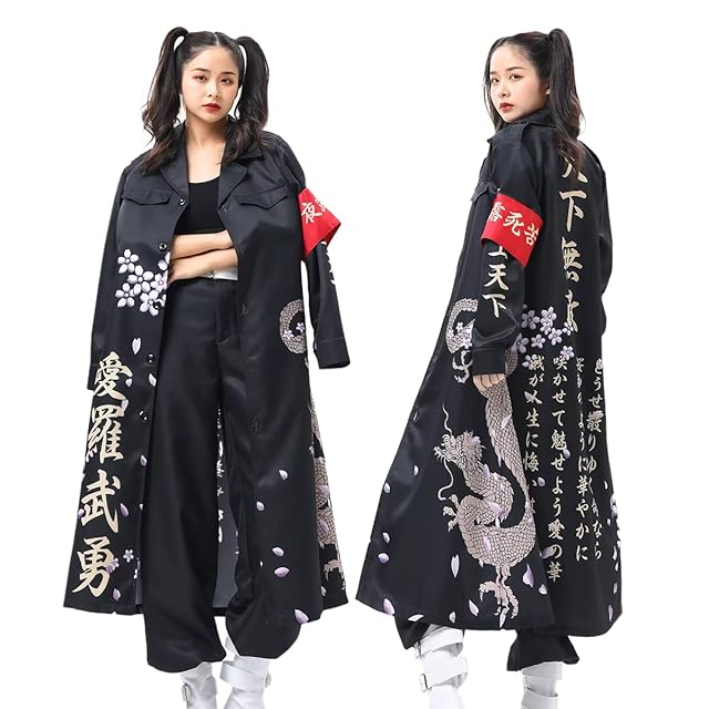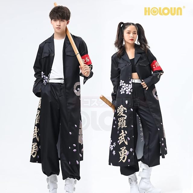[HOLOUN] ハロウィン特攻服コスプレ衣装 印刷スタイル 暴走族 舞台装 演出服 文化祭 撮影 祭り Cosplayハロウィン仮装 アニメ祝日贈り物 (黑色 S
