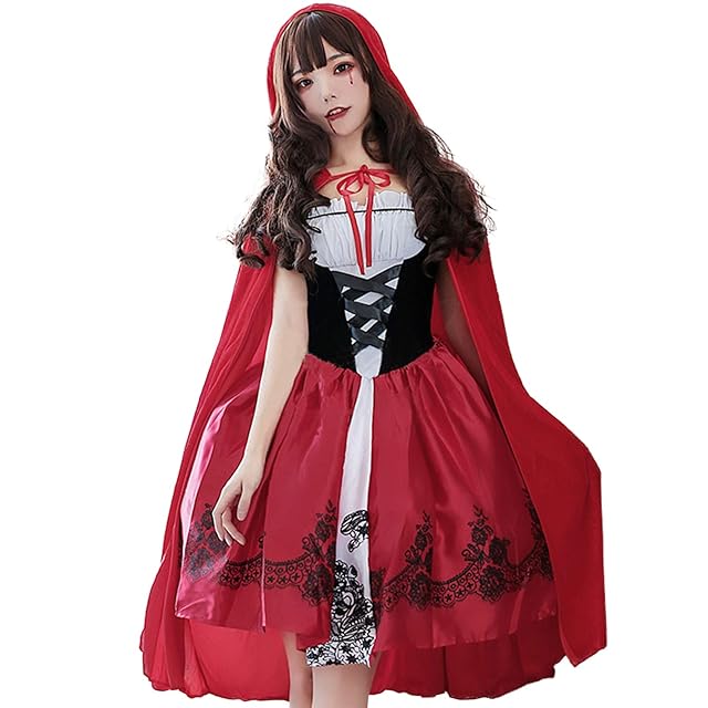 [HAFOS] 赤ずきん風 コスプレ レディース 大人 大きいサイズ ハロウィン メイド服 コスチューム 舞台 イベント 演出服 S~2XLサイズ (XL)