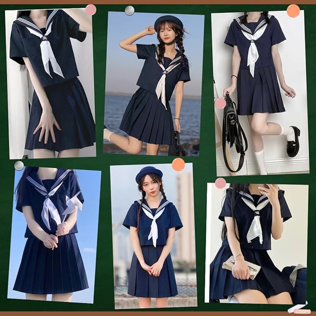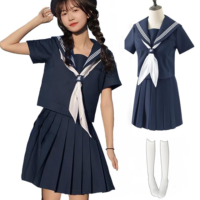 【セーラ服フルセット】上着 / スカート / リボン / 白ソックス 【カラー】紺色 【サイズ】S~2XL(サイズ詳細は商品画像にてご確認ください)