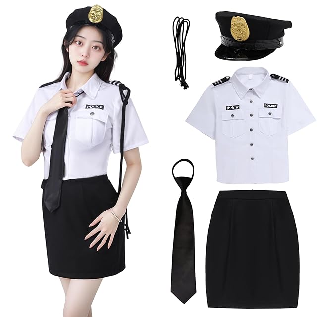 [Formemory] ポリス コスプレ 警察 ハロウィン コスプレ 制服 コスチューム 衣装 パーティー 仮装ミニスカポリス ハロウィン cosplay レディース婦警 ミニスカート 文化祭 (ホワイト, L)