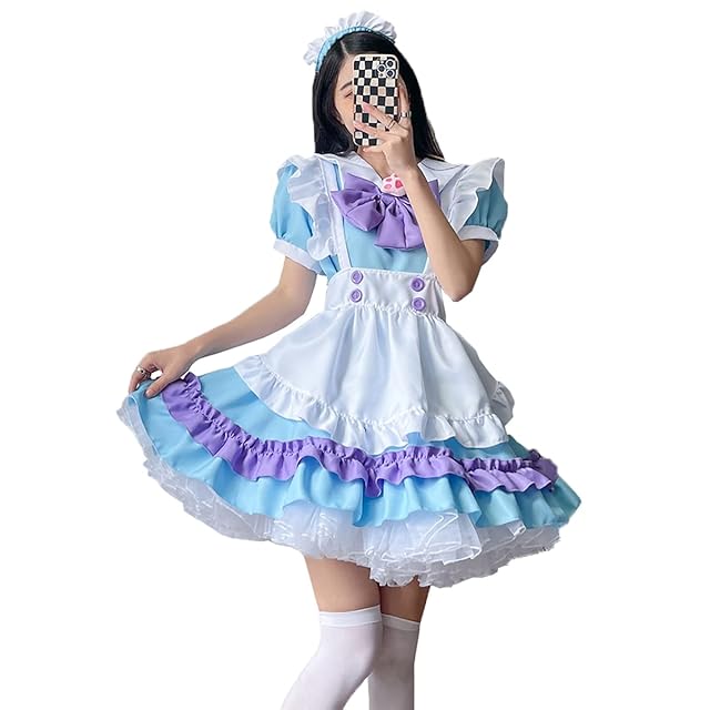[FULINE] メイド服 半袖 レディース コスプレ衣装 lolita メイド服 コスプレ アリス風 コスチューム 仮装 学園祭 メイドカフェー 女装 仮装 ブルー 3XL
