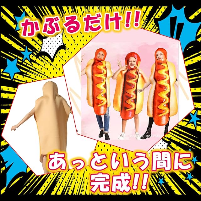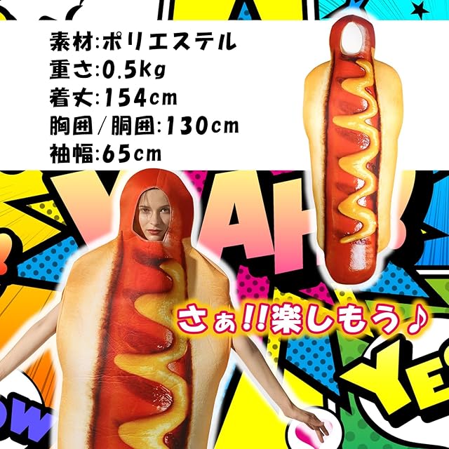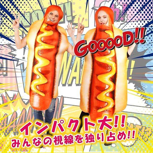 【 とってもリアル 】パーティーや宴会で大活躍!ホットドッグのおもしろコスチュームの登場です。リーズナブルな価格と品質のバランスが抜群です。
