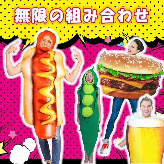 [EVOLUTER] ハロウィン おもしろ衣装 コスプレ ホットドッグ ビール 着ぐるみ えだ豆 コスチューム 面白い 仮装 (ホットドッグ)
