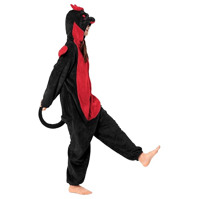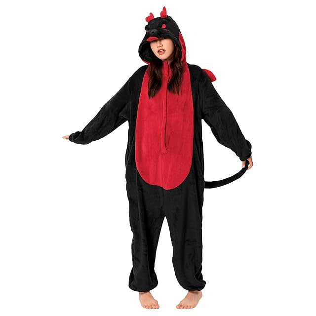 [OLAOLA] 恐竜 着ぐるみ パジャマ 大人 着ぐるみ 動物 コスプレ ふわふわ 冬用パジャマ 仮装 大人用 可愛い 部屋着 もふもふ 暖かい 部屋 防寒 対策 男女兼用 フランネル素材 (ブラック, L (175-185))