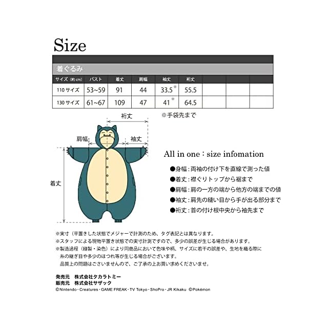 商品名:SAZAC(サザック) フリース着ぐるみ カビゴン 子供用 110cm グリーン TMY-033F
