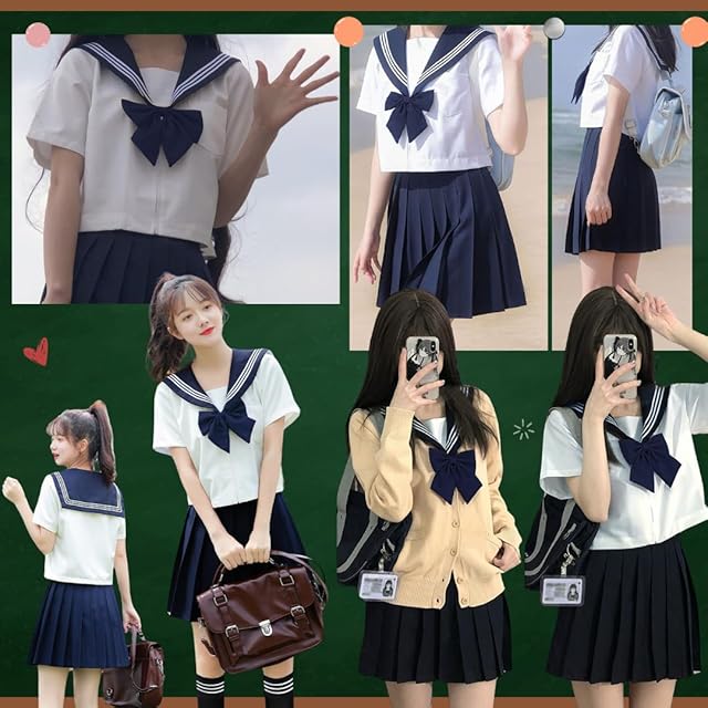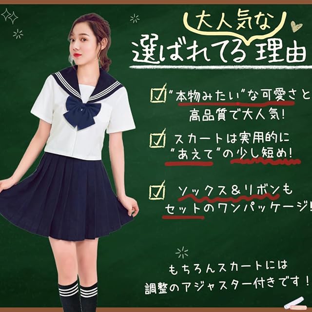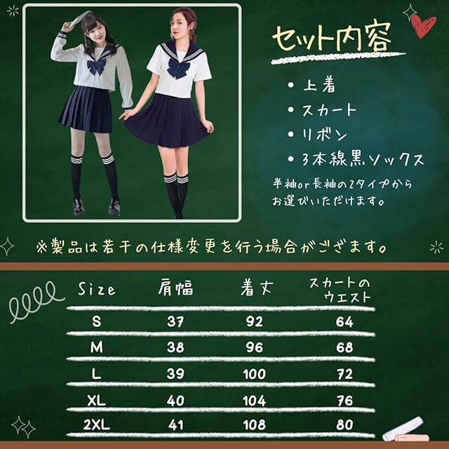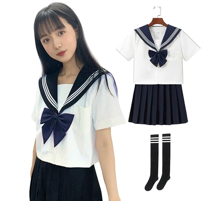 【セーラ服フルセット】上着 / スカート / リボン / 白ソックス 【サイズ】S~2XL(サイズ詳細は商品画像にてご確認ください)