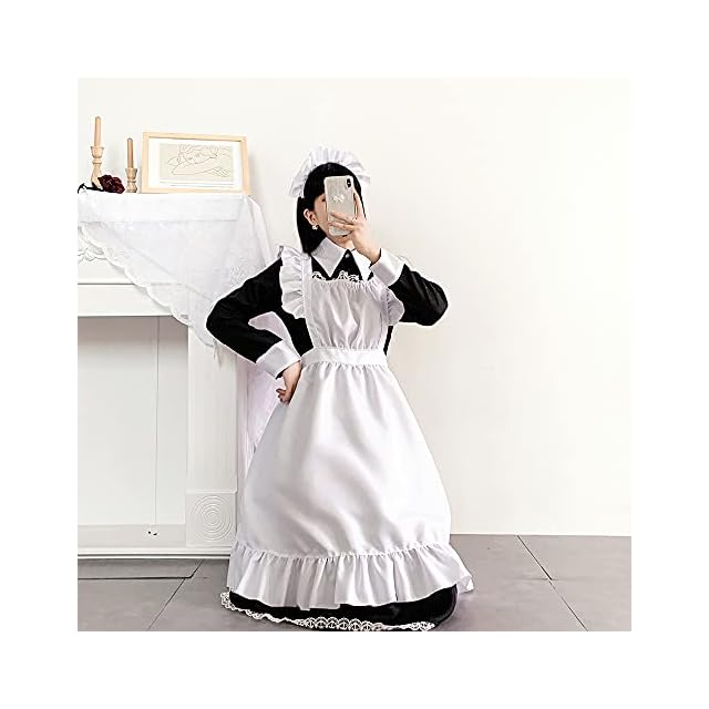 YAISHN メイド服 ロング 英國風 ゴスロリ ワンピース ハロウィン 仮装 レディース 可愛い ロリータ コスプレ 長袖 蝶結ぶ パーティー イベント 演出服 ニーハイソックス付き (M)