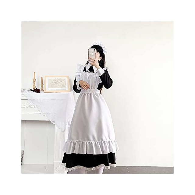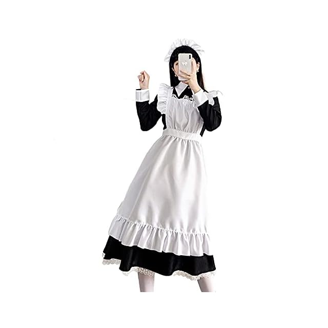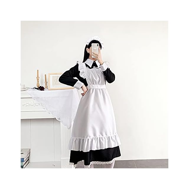 【セット内容】:カチューシャ、ワンピース、エプロン、ニーハイソックス。