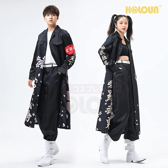 [HOLOUN] ハロウィン特攻服コスプレ衣装 印刷スタイル 暴走族 舞台装 演出服 文化祭 撮影 祭り Cosplayハロウィン仮装 アニメ祝日贈り物(黑色 L