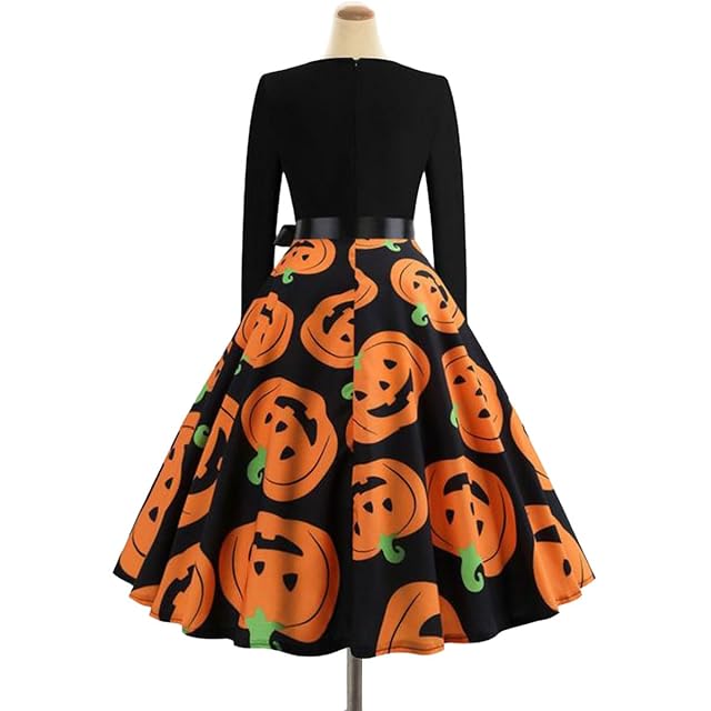 ⭐【 とってもオシャレ 】ハロウィンパーティーやイベントで大活躍!ジャック・オー・ランタンをモチーフにしたスタイリッシュなドレスワンピースです。