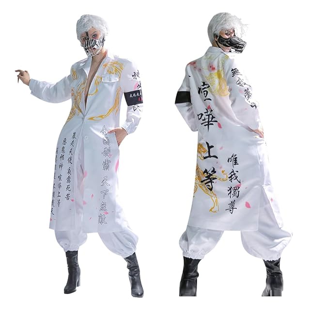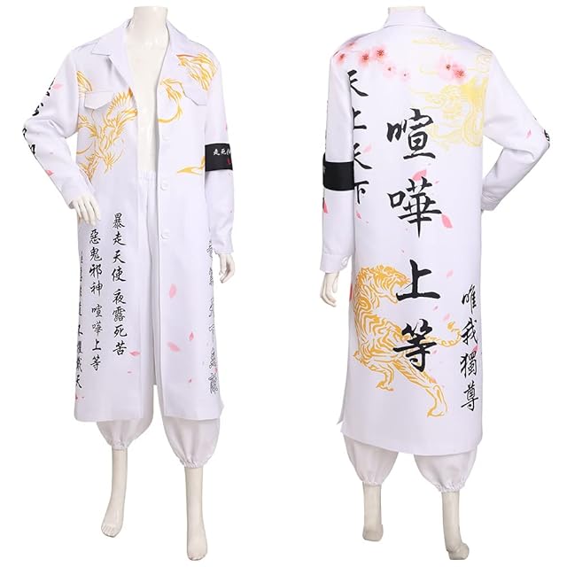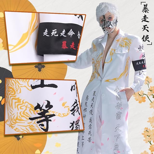 [Hotiego] ハロウィン 特攻服 コスプレ ヤンキー 龍 不良 ツッパリ 暴走族 暴走天使 喧嘩上等 夜露死苦 永遠不滅 愛羅武勇 コスチューム 男女兼用 舞台装 演出服 変装 仮装 イベント 忘年会 cosplay 撮影 祭り 白 S