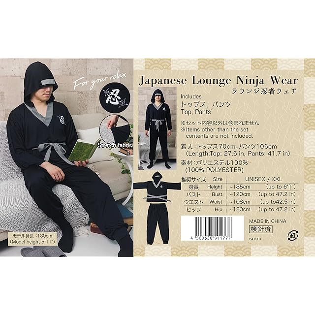 クリアストーン(Clearstone) コスプレ ハロウィン ラウンジ忍者ウェア ユニセックス 3L ブラック