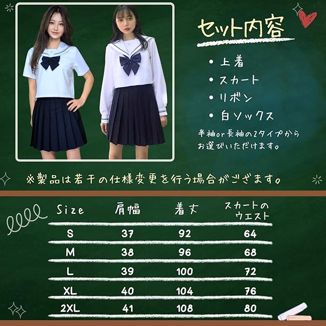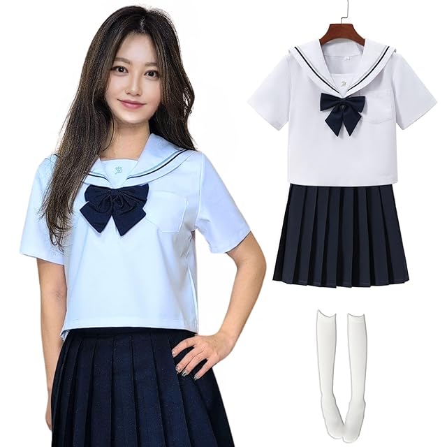 【セーラ服フルセット】上着 / スカート / リボン / 白ソックス 【サイズ】S~2XL(サイズ詳細は商品画像にてご確認ください)