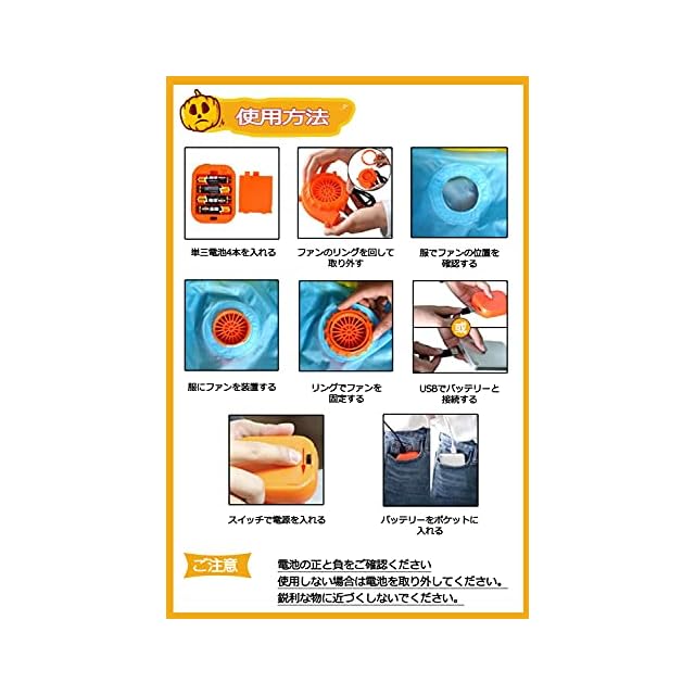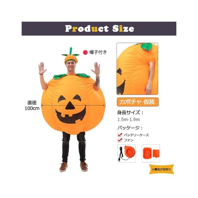 セット内容:カボチャ仮装*1、帽子*1、ファン*1、バッテリーケース*1、手袋*1 、※電池なし(単三電池が別売り)