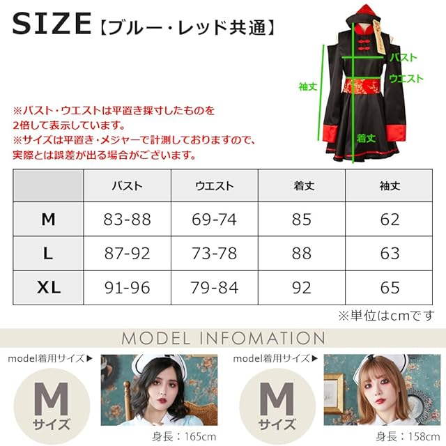 サイズ:■レッド・ブルー 【Mサイズ】バスト:83-88 ウエスト:69-74 着丈:85 袖丈:62 【Lサイズ】バスト:87-92 ウエスト:73-78 着丈:88 袖丈:63 【XLサイズ】バスト:91-96 ウエスト:79-84 着丈:92 袖丈:65