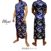 [VEROMAN] チャイナドレス 大きいサイズ チャイナ服 コスプレ メンズ 女装可 (XL, 青)