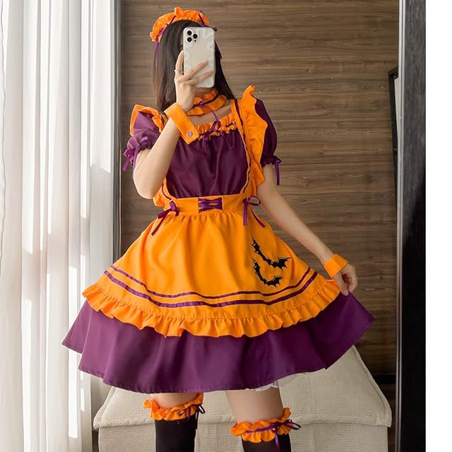 [FULINE] ハロウィーン ハロウィン メイド コスプレ ワンピース ロリータ cos 大きいサイズ 萌え 制服 文化祭 学園祭 衣装 撮影 可愛い ゴスロリ 初心者 セット オレンジ L