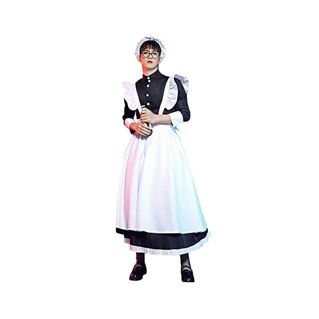 【高品質】高品質な素材をを使用して、手で触ると質感が良いです。かわいいカチューシャ、フリルのついたエプロン、やわらかく生地、肌触りも心地よい、爽やかな感じをもたらします。一瞬にかわいいメイドに変身できます。コスプレ用だけではなく、日常生活やイベントなどでワンピースとしても着やすいです。