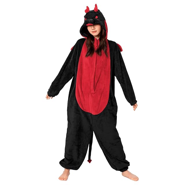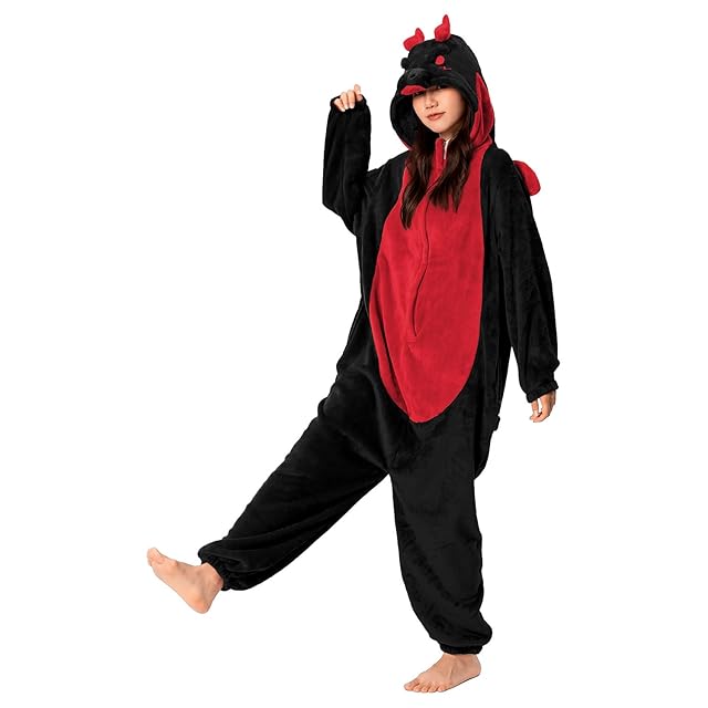 [OLAOLA] 恐竜 着ぐるみ パジャマ 大人 着ぐるみ 動物 コスプレ ふわふわ 冬用パジャマ 仮装 大人用 可愛い 部屋着 もふもふ 暖かい 部屋 防寒 対策 男女兼用 フランネル素材 (ブラック, M (160-175))