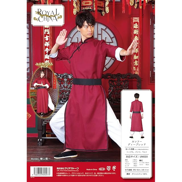 クリアストーン(Clearstone) ロイヤルチャイナ コスプレ ハロウィン カンフー ユニセックス ディープレッド