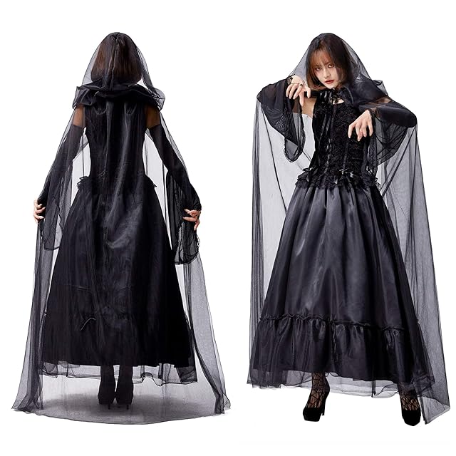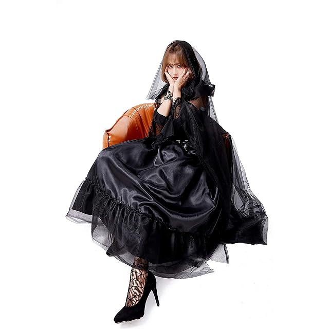 [JUNDOMECY] ハロウィン コスプレ 魔女 吸血鬼 衣装 大人 レディース 大きいサイズ セクシー 黒 ロング ワンピース マント 貴族 バンパイアドレス イベント 仮装パーティー 文化祭 (M)