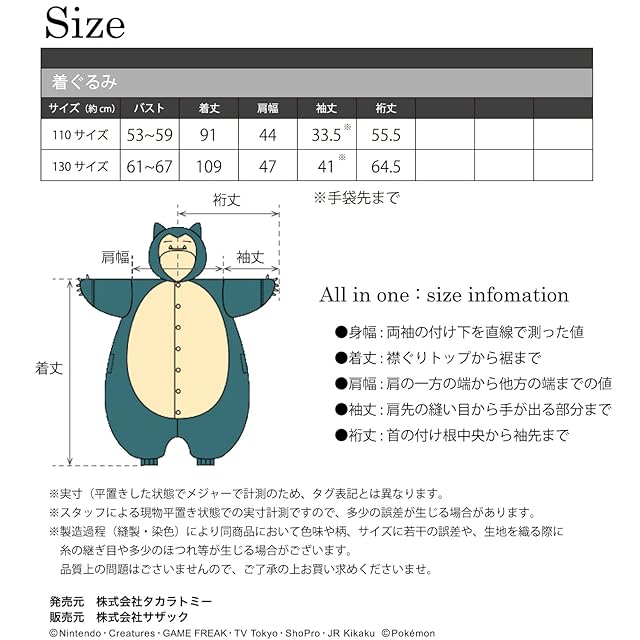 商品名:サザック フリース着ぐるみ カビゴン 130cm TMY-033H