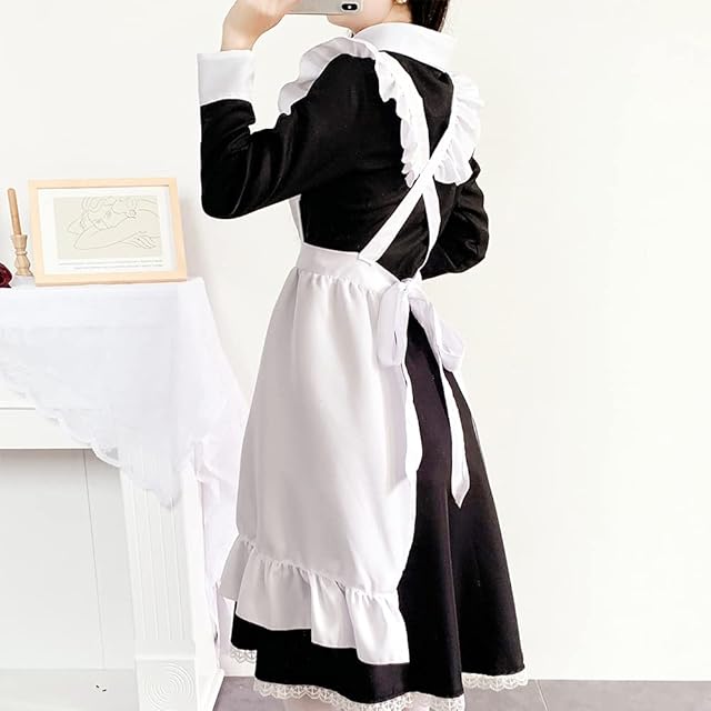 【セット内容】:カチューシャ、ワンピース、エプロン、ニーハイソックス。