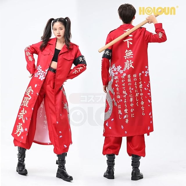 [HOLOUN] ハロウィン特攻服コスプレ衣装 印刷スタイル 暴走族 舞台装 演出服 文化祭 撮影 祭り Cosplayハロウィン仮装 アニメ祝日贈り物(赤い L
