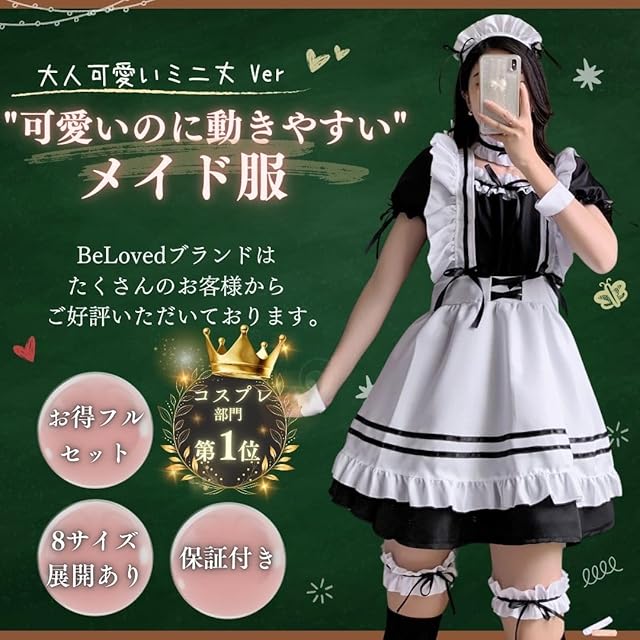 [BeLoved] メイド服 タイツ付きフルセット 【サイズ:S~5XL】 小悪魔 大きいサイズ 文化祭 学園祭 コンカフェ メイドカフェ イベント 大人 男女兼用 かわいい 可愛い プレゼント cosplay costume halloween 衣装 服 女性用 レディース メンズ 仮装 コスチューム ハロウィン クリスマス 女装 人気 ランジェリー ベビードール 用 こすぷれ コスプレ