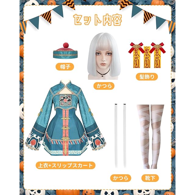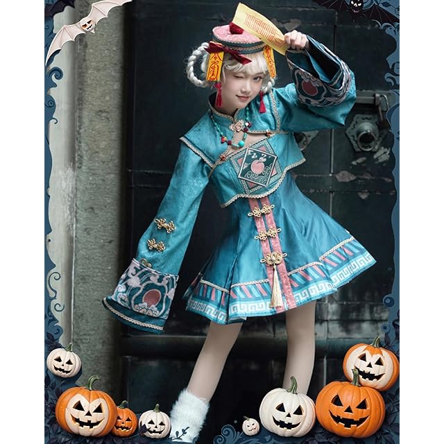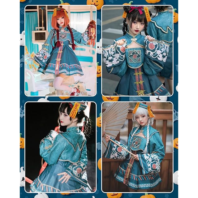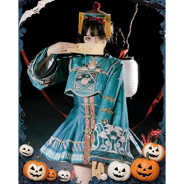 [JIURUN] ハロウィン コスプレ 衣装 キョンシー服 ロリータ ワンピース アニメ 刺繍 ゴスロリ かわいい レトロ ロリータ 仮装 コスチューム クリスマス コスプレ 学園祭 文化祭 イベント 仮装 暗黒風 演出服 クリスマス 可愛い
