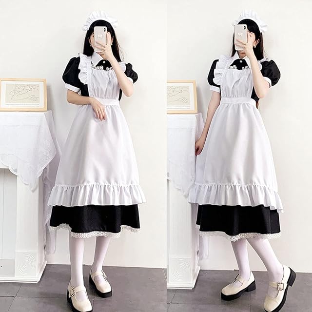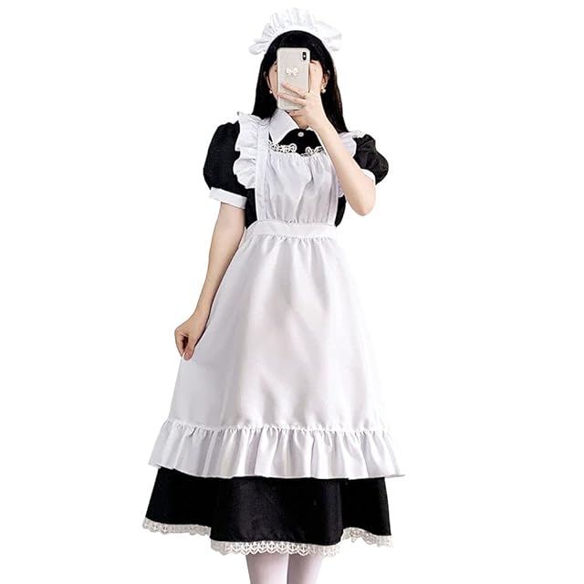 [FULINE] メイド服 ロングスカート 英国風 コスプレ衣装 lolita メイド服 コスチューム 仮装 学園祭 メイドカフェー 男性用 仮装 女装 半袖 ロング 5XL