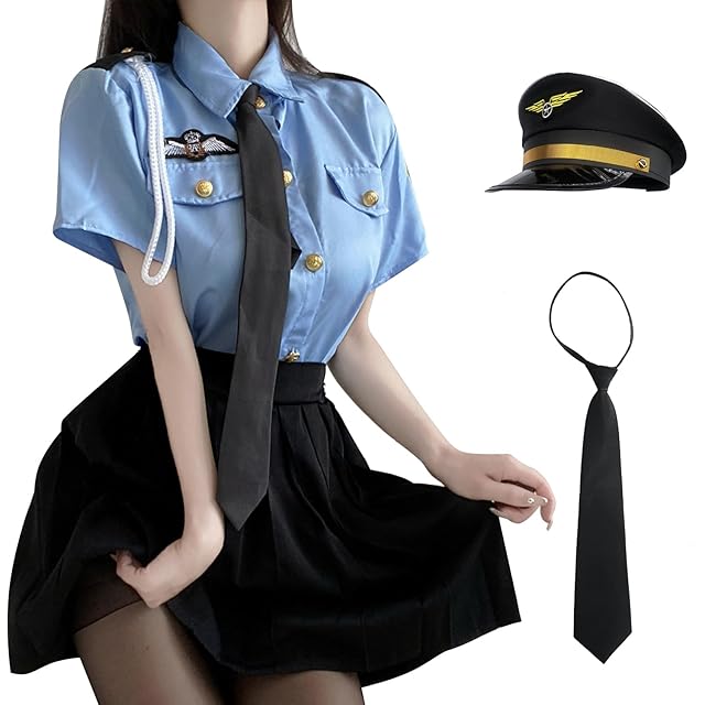 ✨【本格志向に】ハロウィンの夜、街中が仮装に包まれる中、あなたも一際目立つ存在になりませんか?そうしたら婦人警察官を仮装したい方に必見!Tシャツ、スカート、ネクタイ、帽子の4点セット、シンプルでありながらも洗練されたコスチュームは、どんなシーンでも目を引くこと間違いなし。黒い・青い2色から展開され、本格な警察官に変身しましょう。