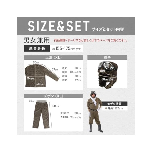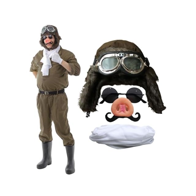 ⭐【 豪華7点フルセット 】つなぎ、飛行帽、ゴーグル、豚鼻、サングラス、ちょびひげ、マフラーの豪華7点フルセットだから、届いてすぐにあのキャラに変身が可能です!