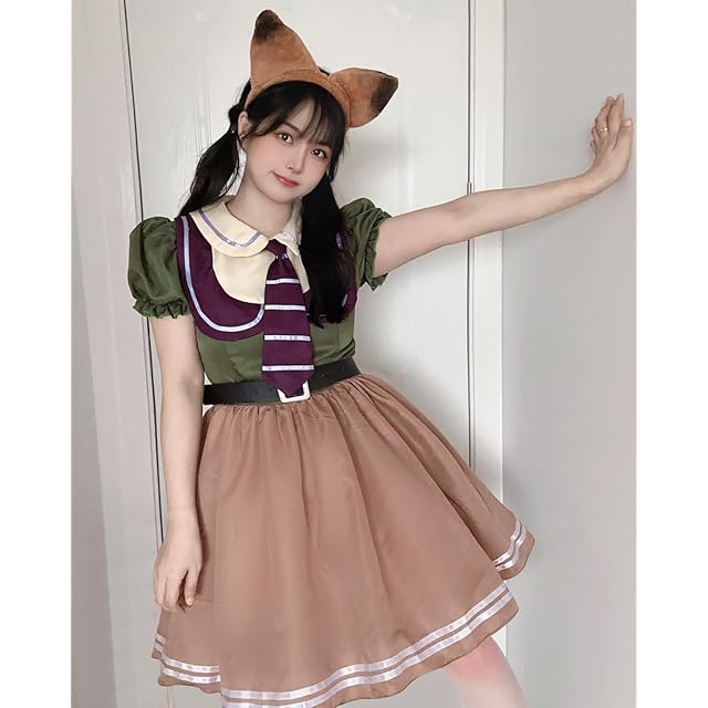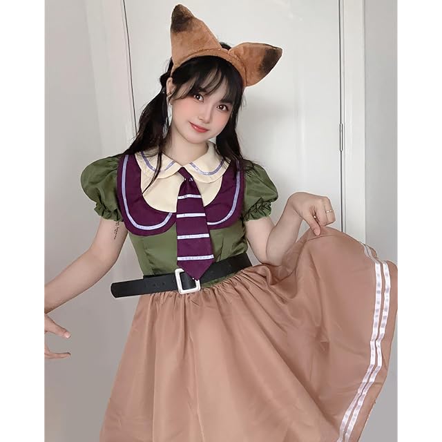 【豪華5点セット】ウサギ警察:うさ耳カチューシャ+ネクタイ+ワンピース+バッジ+ベルト。キツネ詐欺師:キツネ耳カチューシャ+ネクタイ+ワンピース+シッポ+ベルト。ファスナー付きで着脱が簡単ですよ!