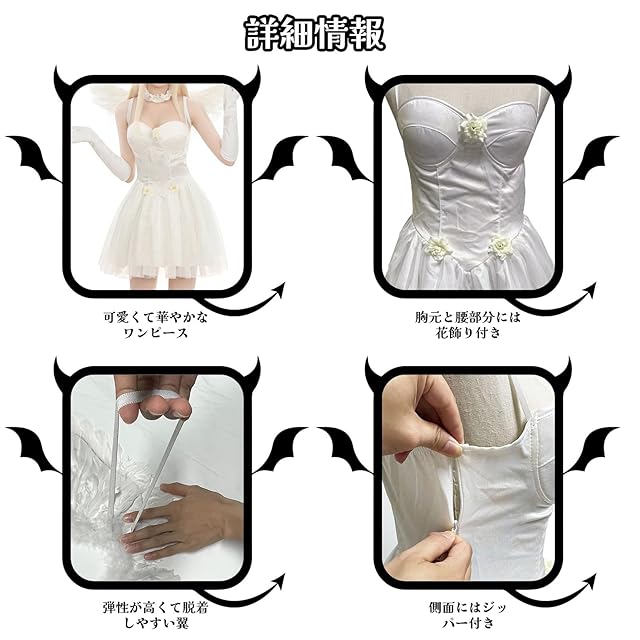 【可愛い感と快適さ】:この天使衣装はセクシーなだけでなく、繊細なキャミソールは可愛くて、美少女のようなエネルギッシュさを演出してくれます。また、きちんとした生地は長時間の着用でも快適さをします。