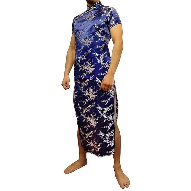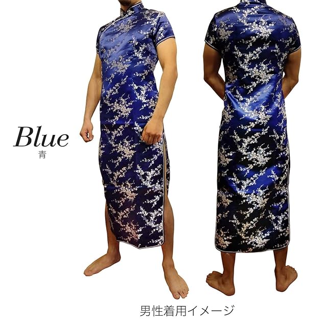 [VEROMAN] チャイナドレス 大きいサイズ チャイナ服 コスプレ メンズ 女装可 (3XL, 青)