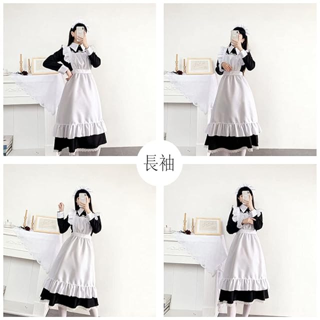 [FULINE] メイド服 ロングスカート 英国風 コスプレ衣装 長袖 レディース エプロン ドレス コスチューム 仮装 女装 学園祭 長袖 ロング M