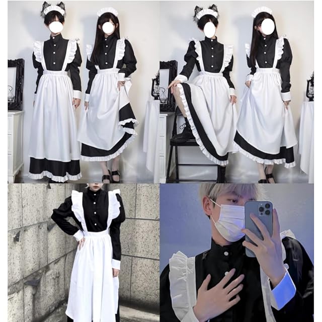 [FULINE] メイド服 ロングスカート 英国風 コスプレ衣装 長袖 レディースエプロン ドレス コスチューム 仮装 女装 学園祭 ブラック S