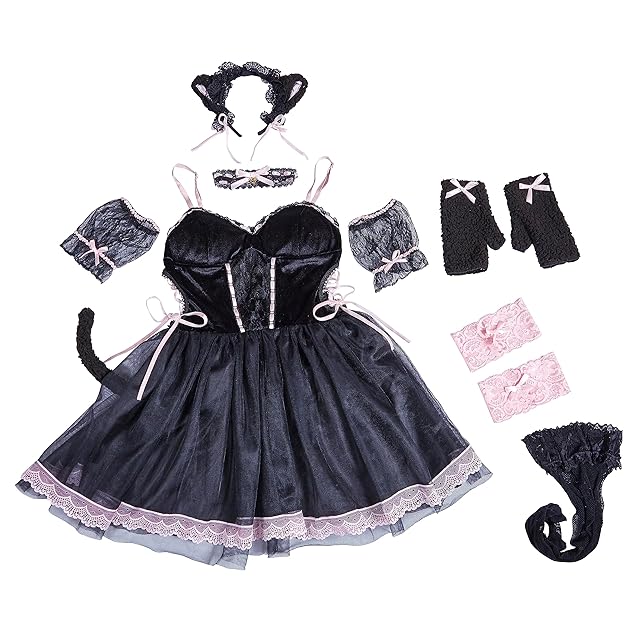 セット内容:カチューシャ、チョーカー、ワンピース、付け袖、グローブ、ガーターリング×2、ニーハイソックス