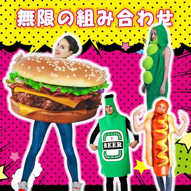 [EVOLUTER] ハロウィン おもしろ衣装 コスプレ ホットドッグ ビール 着ぐるみ えだ豆 コスチューム 面白い 仮装 (ハンバーガー)