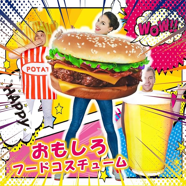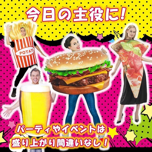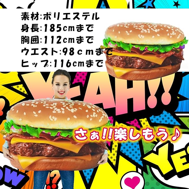 【 とってもリアル 】パーティーや宴会で大活躍!ハンバーガーのおもしろコスチュームの登場です。リーズナブルな価格と品質のバランスが抜群です。