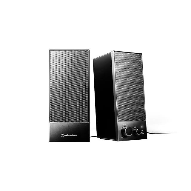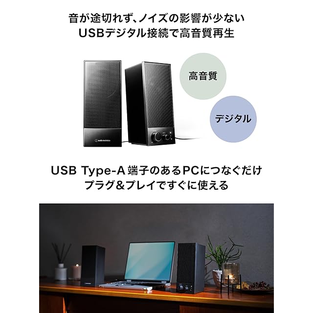 オーディオテクニカ AT-SP105 アクティブスピーカー PC レコードプレーヤー 【3.5mmステレオミニ / USBデジタル入力 USB給電 低音域調整ノブ ヘッドホン端子 DAC付き出力6W φ58mmフルレンジユニット】 ブラック