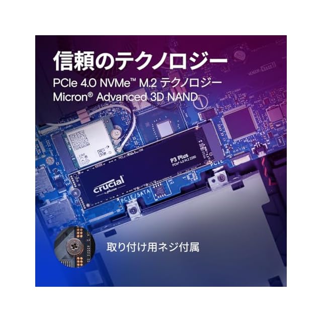 ✅[インターフェース/フォームファクタ] クルーシャル P3plus シリーズ 内臓 SSD 2TB 5年 SATA PCIe 4.0 NVMe テクノロジー M.2 (2280) 対応 最大読込速度 4200MB/秒