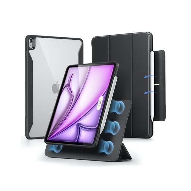 ESR iPad Air 13インチ ケース (2025/2024、M3/M2) 専用 Pencilホルダー付き 取り外し可能マグネットカバー 縦置き/横置きスタンド Pencil Pro/USB-C完全対応 Rebound 360シリーズ ブラック