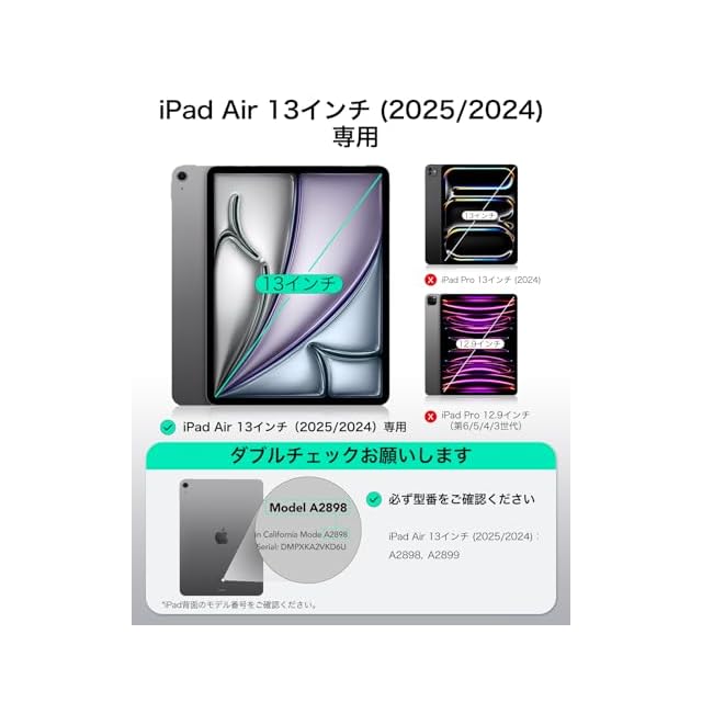 【互換性】:iPad Air 13インチ(2025/2024)専用です。モデル: A2898、A2899。他のiPadモデルと互換性がありません
